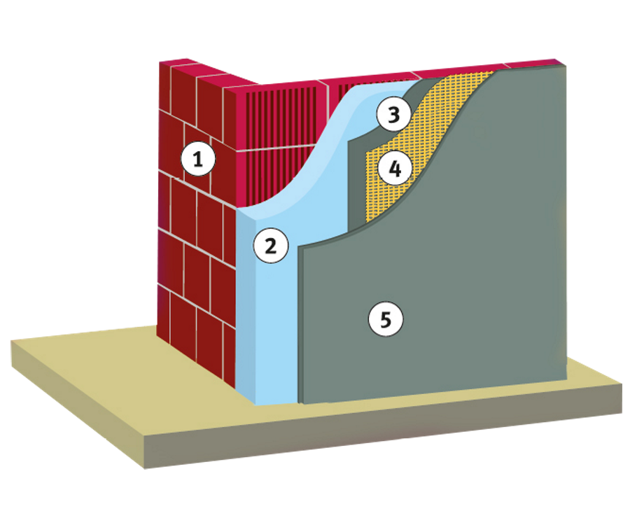 • Υφιστάμενες κατασκευές: Εφαρμόζεται στη θερμομόνωση υφιστάμενων κατασκευών και εξωτερικών ανακαινίσεων του κτιρίου. Προϊόν: ΚΕΒΕ GF Γκοφρέ