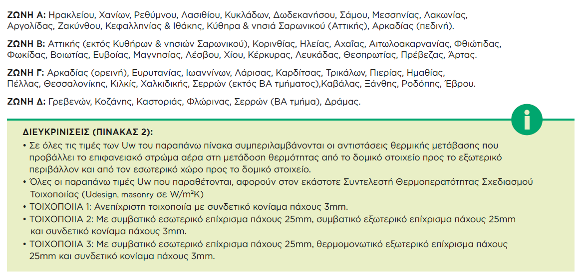 Κλιματικές Ζώνες και όρια Συντελεστή Θερμοπερατότητας Uw (W/m2K)